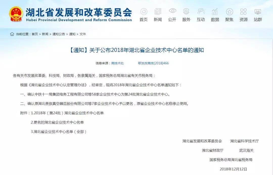 12月12日,湖北省發(fā)展和改革委員會發(fā)布了《2018年(第24批)湖北省企業(yè)技術(shù)中心認(rèn)定名單》,進(jìn)行網(wǎng)上公示,共58家企業(yè)入選,武漢磁電公司位列第4。