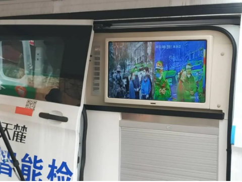 移動(dòng)檢測(cè)車(chē)上還搭載了紅外熱成像測(cè)溫系統(tǒng):能夠快速對(duì)農(nóng)貿(mào)市場(chǎng)流動(dòng)人群進(jìn)行紅外熱成像測(cè)溫,并在車(chē)載顯示屏上即時(shí)顯示體溫,如體溫異常,立即發(fā)出警報(bào)。安裝該系統(tǒng)后,現(xiàn)場(chǎng)測(cè)溫工作量大幅減少,既能實(shí)現(xiàn)快速篩查,又能避免交叉感染。