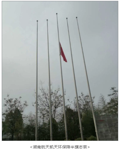 為表達湖南航天全體干部職工、離退休人員及家屬對抗擊新冠肺炎疫情斗爭中犧牲的烈士和逝者同胞表示深切哀悼。4月4日,湖南航天及具備條件的3家單位均降半旗志哀,同時鳴響防空警報。