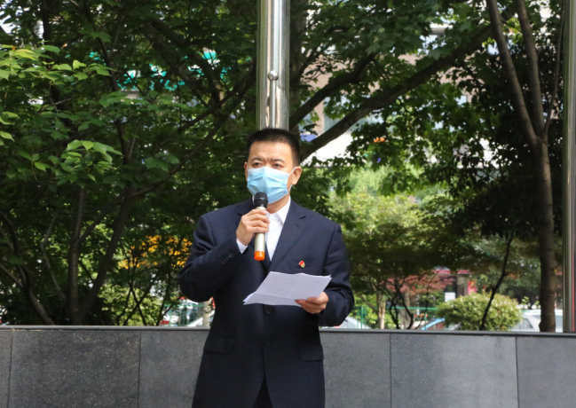 伴隨著雄壯的國(guó)歌和激昂的《中國(guó)航天科工之歌》,鮮艷的五星紅旗和藍(lán)白色的司旗先后冉冉升起,全體人員列隊(duì)行注目禮。
