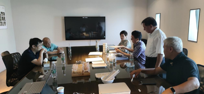 在望沛公司位于虹橋區(qū)的產(chǎn)品展示中心,嚴(yán)波一行聽取了臺(tái)資創(chuàng)始人關(guān)于自保溫新型TJ輕質(zhì)節(jié)能隔墻板的介紹,并初步溝通合作訴求。