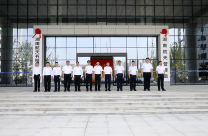 升旗儀式之后進行了簡短的新園區(qū)揭牌儀式。中國航天建設(shè)集團黨委書記、董事長李治國,中國航天建設(shè)集團黨委委員、副總經(jīng)理宋友軍,湖南航天黨委書記、董事長焦繼革,湖南航天黨委副書記、總經(jīng)理張鏑共同為新園區(qū)揭牌。