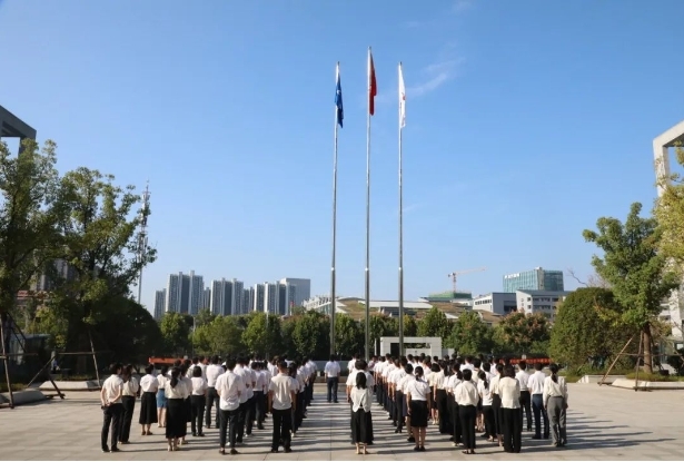 上午8點40分,伴隨著雄壯的《義勇軍進行曲》和激昂的《中國航天科工之歌》,鮮艷的五星紅旗和集團公司司旗先后冉冉升起,全體人員列隊行注目禮。