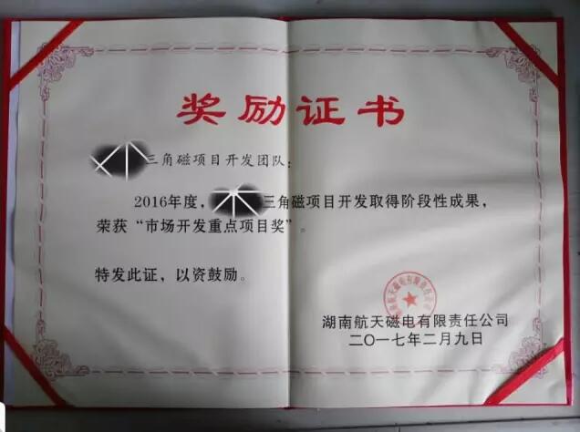 作為市場開拓的兩柄利劍,湖南磁電公司市場營銷事業(yè)部與項目部劍指國際國內(nèi)目標(biāo)客戶,憑借豐富的市場經(jīng)驗,強(qiáng)化客戶需求分析,充分發(fā)揮自身技術(shù)、產(chǎn)品和航天磁品牌優(yōu)勢,采取客戶開發(fā)分級管理方法,建立重點開發(fā)項目周調(diào)度工作機(jī)制,強(qiáng)化部門間的協(xié)同配合,加快市場反應(yīng)速度,共同開發(fā)新客戶、新項目,并取得了喜人的成績,其中三角磁、方塊磁等重點項目開發(fā)團(tuán)隊被公司授予2016年度“市場開發(fā)重點項目獎”。