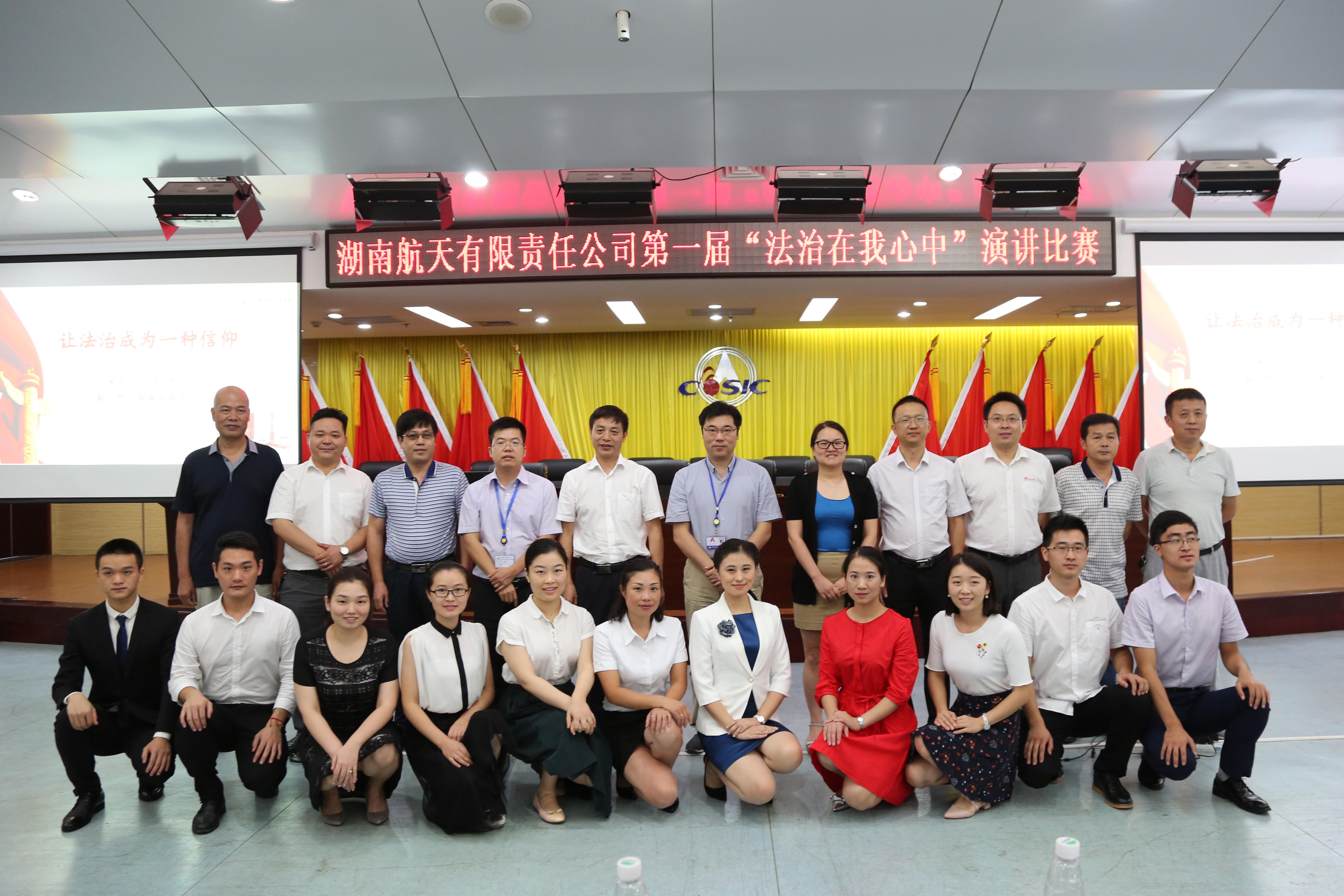 8月29日,湖南航天舉辦了第一屆“法治在我心中”演講比賽。湖南航天12家所屬單位均派出選手參賽。湖南航天總會計師、總法律顧問嚴波、一級專務廖豐湘、黨群部部長殷波、紀檢監(jiān)察審計部負責人雷地芬和副總法律顧問艾如道作為本次演講比賽的評委,對12位選手的演講進行評分。