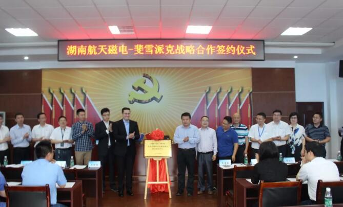 斐雪派克中國(guó)青島公司總經(jīng)理菲利普·艾梅爾 (Felipe Eymael)先生一行三人出席了本次簽約及揭牌儀式,湖南航天黨委書記唐應(yīng)偉,湖南航天總經(jīng)理助理、湖南磁電董事長(zhǎng)、黨委書記王永森,長(zhǎng)沙市新材料產(chǎn)業(yè)研究院董事長(zhǎng)、黨委書記王湘京,湖南磁電總經(jīng)理鄭自儒及本部相關(guān)部門負(fù)責(zé)人等成員參加了簽約儀式。