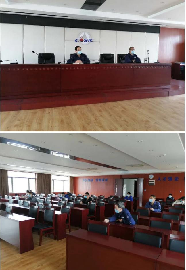 當(dāng)日下午13:40,公司組織第二批駐廠復(fù)工人員圍繞疫情防控和復(fù)工復(fù)產(chǎn)工作在科研樓520開(kāi)展動(dòng)員及防疫培訓(xùn),同時(shí)通過(guò)云信平臺(tái)對(duì)第二批不駐廠復(fù)工人員進(jìn)行培訓(xùn)。公司黨委副書記、總經(jīng)理李星輝對(duì)第二批復(fù)工人員召之即來(lái),沖鋒在前的奉獻(xiàn)精神表示感謝,并就做好疫情防控和復(fù)工生產(chǎn)兩手抓工作進(jìn)行部署。他指出,復(fù)工人員要以強(qiáng)烈的緊迫感和高度責(zé)任感嚴(yán)格遵守疫情防控有關(guān)規(guī)定,執(zhí)行好各項(xiàng)工作要求,在完成各項(xiàng)科研生產(chǎn)任務(wù)的同時(shí)務(wù)必嚴(yán)格按照要求做好個(gè)人防護(hù)。同時(shí)他勉勵(lì)復(fù)工人員要不負(fù)重托、齊心協(xié)力,為圓滿完成各項(xiàng)重要任務(wù)貢獻(xiàn)智慧和力量。副總經(jīng)理田軍囑咐復(fù)工員工要強(qiáng)化防控與風(fēng)險(xiǎn)意識(shí),保護(hù)好自己,也保護(hù)好他人。