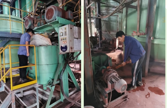 車間機修第一時間改進高性能牌號的進料方式,降低生產能耗,提高生產效率。以往高性能牌號在混料塔內成分校正后需轉料至儲料塔后才能進入窯內,增加了設備的工作時間。他們經過仔細商議,優(yōu)化進料管道,使混料塔成分校正后可以直接進窯,單線每天可減少1臺22KW電機與1臺2.2KW軟管泵24小時工作能耗,并對煙氣管道進行疏通,保證引風通暢性,確保預燒溫度穩(wěn)定性。