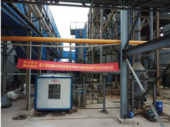 由航天凱天環(huán)保技術研發(fā)中心(工研院)承擔的湖南省科技重大專項“基于柔性膜材料的玻璃窯爐燃石油焦煙氣高溫除塵關鍵技術研究與應用”于3月底在株洲醴陵旗濱玻璃有限公司4#線順利完成中試試驗。