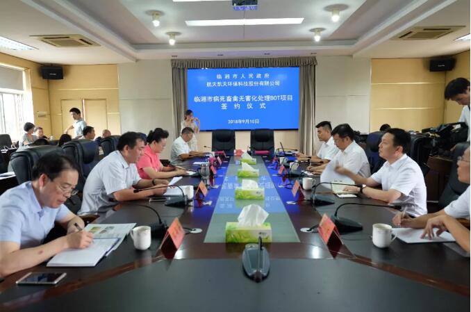 9月10日,航天凱天與臨湘市人民政府簽約病死畜禽無(wú)害化處理和規(guī)模養(yǎng)殖場(chǎng)糞污綜合處理工程BOT項(xiàng)目,是航天凱天在病死畜禽無(wú)害化處理第一個(gè)標(biāo)志性示范試點(diǎn)項(xiàng)目,為后期市場(chǎng)開(kāi)拓邁出了成功的第一步,奠定了堅(jiān)實(shí)的基礎(chǔ),填補(bǔ)了航天凱天在病死畜禽無(wú)害化處理領(lǐng)域的空白。對(duì)公司大固廢戰(zhàn)略布局發(fā)展和示范作用具有重大意義。臨湘市市長(zhǎng)魏淑萍,航天凱天環(huán)保常務(wù)副總裁周波平出席簽約儀式。