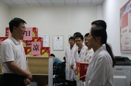 楊運(yùn)斌將防暑降溫物資送到職工手中,并深入了解了職工的工作情況、身體狀況及防疫措施。他對大家不畏酷熱、堅(jiān)守崗位的精神給予了贊揚(yáng)和鼓勵(lì),并叮囑大家在保障科研生產(chǎn)的同時(shí),加強(qiáng)科學(xué)防護(hù),合理安排作息時(shí)間,注意身體健康。