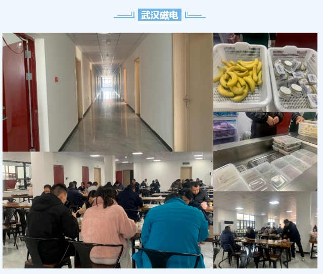 武漢磁電著力解決職工群眾的操心事、煩心事、揪心事,把實(shí)事辦到群眾心坎里去。目前,武漢磁電新廠區(qū)宿舍已建設(shè)完工并投入使用。同時(shí),武漢磁電不斷加強(qiáng)新廠區(qū)食堂餐飲質(zhì)量,定期更換菜單,增加餐食的選擇性,為新廠區(qū)職工提供良好的工作和生活條件。