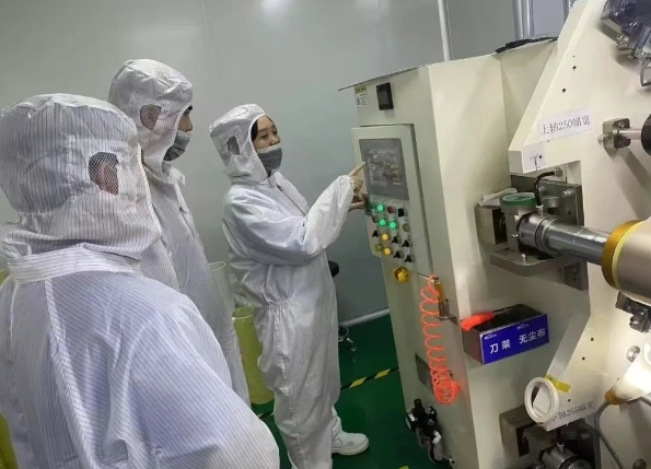 說著,她俯身拿起工具,熟練地示范起來:“你看,先將收卷機(jī)氣脹軸上穿上PVC管充氣,旋轉(zhuǎn)PVC管直徑將產(chǎn)品拉緊拉平,將氣脹軸充氣,使PVC管固定于氣脹上, 手動旋轉(zhuǎn)PVC管檢查氣脹軸與PVC管間張力,將其固定。” 在崔會麗的耐心指導(dǎo)下,楊巧夢逐漸掌握了技巧,順利完成了產(chǎn)品上機(jī)生產(chǎn),緊鎖的眉頭也舒展開來。