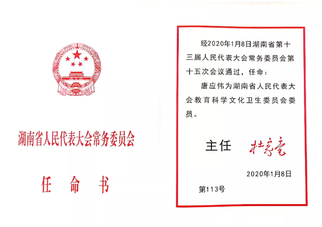 今天上午,湖南省十三屆人大常委會(huì)第十五次會(huì)議經(jīng)過(guò)表決,任命:湖南航天黨委書記、董事長(zhǎng)唐應(yīng)偉為湖南省人民代表大會(huì)教育科學(xué)文化衛(wèi)生委員會(huì)委員。