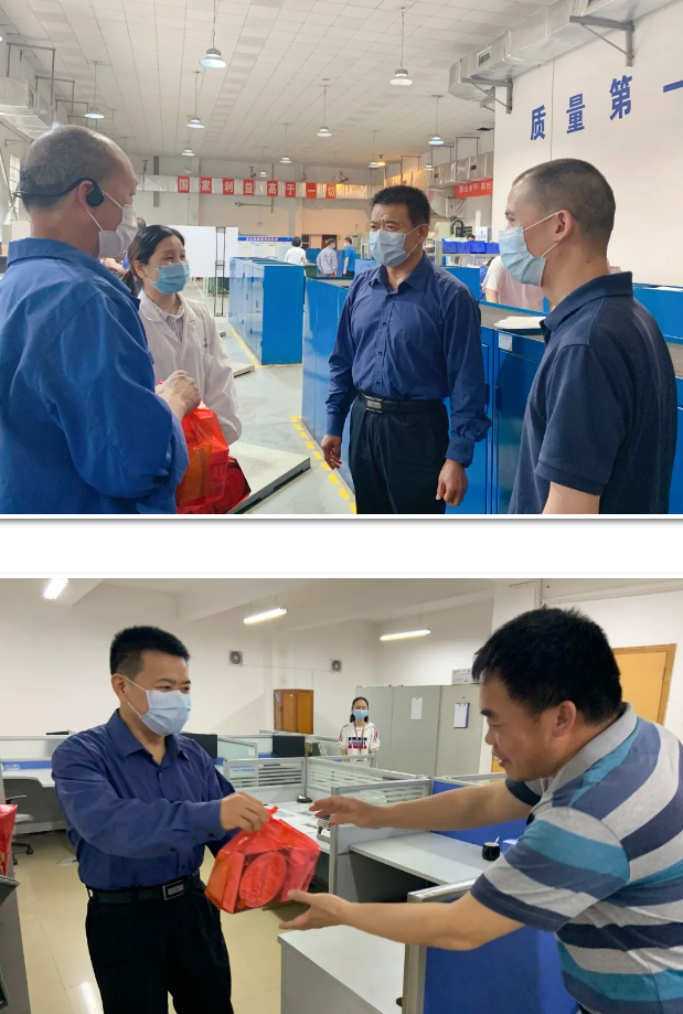 唐應(yīng)偉每到一處都認(rèn)真查看生產(chǎn)線運(yùn)轉(zhuǎn)情況,親切地與員工交談,向不分晝夜,加班奪損失、全力趕序時的科研生產(chǎn)一線干部職工致以節(jié)日的問候并送上慰問物資。他希望員工們在繁忙的工作之余,注意勞逸結(jié)合、確保安全、再接再厲,把工作干得更好。