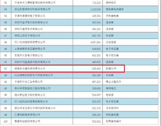 日前,中國電子元件行業(yè)協(xié)會(huì)根據(jù)2019年行業(yè)骨干企業(yè)的規(guī)模實(shí)力、財(cái)務(wù)狀況、技術(shù)研發(fā)等綜合能力,評選并發(fā)布了2020年(第 33 屆)中國電子元件百強(qiáng)企業(yè)名單,湖南航天磁電公司成功上榜。