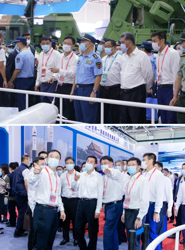 許其亮、王勇和軍隊(duì)、地方、上級(jí)機(jī)關(guān)領(lǐng)導(dǎo)視察中國(guó)航天科工展廳。中國(guó)航天科工集團(tuán)有限公司攜全域攻防裝備七大體系、113項(xiàng)裝備展品重磅亮相,以HQ-9BE遠(yuǎn)程防空導(dǎo)彈武器系統(tǒng)、YJ-18E潛射導(dǎo)彈武器系統(tǒng)等大國(guó)重器為代表的50余型先進(jìn)裝備首次亮相,全面展示中國(guó)航天科工在加快武器裝備現(xiàn)代化建設(shè)和航天強(qiáng)國(guó)建設(shè)等方面的發(fā)展成果,充分詮釋“踐行初心使命,推動(dòng)高質(zhì)量發(fā)展,建設(shè)世界一流航天防務(wù)集團(tuán)公司”的參展主題。