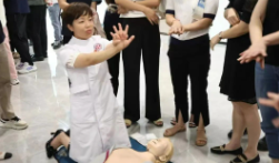 徐芙蓉通過(guò)人體模型、AED除顫儀,為學(xué)員開展心肺復(fù)蘇術(shù)、海姆立克急救法現(xiàn)場(chǎng)實(shí)操教學(xué)。學(xué)員們紛紛表示通過(guò)理論學(xué)習(xí)、現(xiàn)場(chǎng)實(shí)操,較好地掌握了心肺復(fù)蘇的操作要點(diǎn),收獲頗豐。