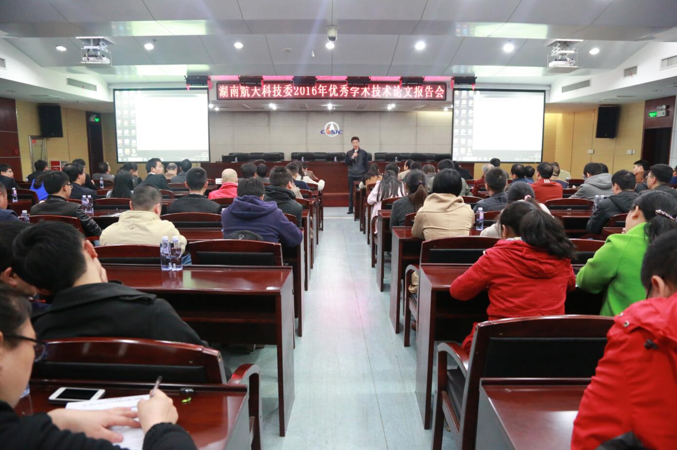 為了充分發(fā)揮所撰寫論文的作用,活躍湖南航天學(xué)術(shù)技術(shù)交流氣氛,不斷提升學(xué)術(shù)技術(shù)水平,湖南航天科技委于2016年11月2日晚組織召開了2016年優(yōu)秀學(xué)術(shù)技術(shù)論文報(bào)告會(huì),湖南航天科技委領(lǐng)導(dǎo)、常委、委員、專業(yè)組成員和其他科技人員共151人參加了會(huì)議。會(huì)議由湖南航天科技委副主任謝勁勵(lì)主持,湖南航天科技委主任、總質(zhì)量師、總工藝師段東北作了講話。
