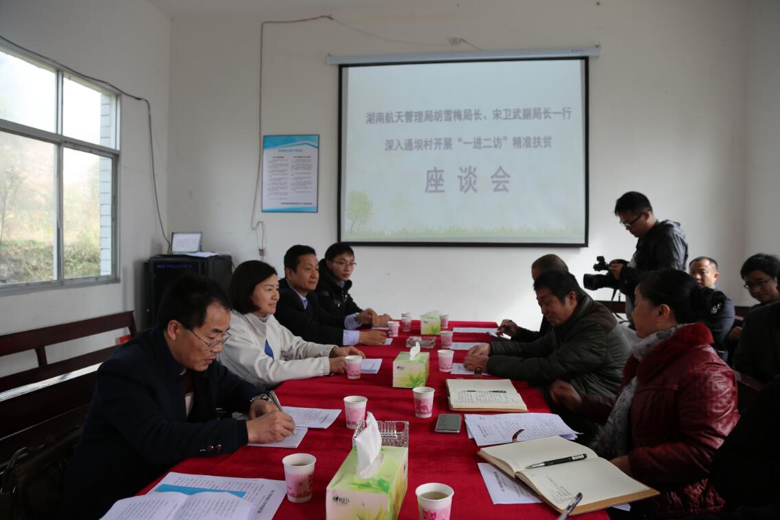 隨后,與當(dāng)?shù)卣嚓P(guān)人員、村主干部、貧困戶代表在村部召開了扶貧攻堅座談會。座談會上胡雪梅指出,一是此次調(diào)研扶貧工作主要目的是通過實地調(diào)研、了解駐村幫扶工作開展情況和幫扶需求,通過有針對性的幫扶工作,使通壩村和村民真正受益,同時也希望能夠為保靖縣的經(jīng)濟(jì)發(fā)展做一些貢獻(xiàn);二是湖南航天管理局在接到省委下達(dá)的扶貧工作任務(wù)后,非常重視,明確了相關(guān)責(zé)任、成立了專門的扶貧辦公室,選派干部駐村幫扶,并以“個人做代表,單位做后盾”的扶貧理念,有計劃、有針對性的開展各種幫扶活動,幫扶成效非常明顯,尤其對近兩年村內(nèi)基礎(chǔ)設(shè)施的不斷完善,和村容村貌發(fā)生了巨大改變表示非常滿意。她要求,駐村工作隊和村主干部一道要多聽取縣、鎮(zhèn)領(lǐng)導(dǎo)對村扶貧工作的意見,做好駐村幫扶工作,按期完成脫貧目標(biāo)任務(wù),確保2017年整村脫貧,通過各方面共同努力,將通壩村打造成美麗鄉(xiāng)村的典范,并表示將在后期工作上給予大力支持。一是幫助聯(lián)系專業(yè)人員做好鄉(xiāng)村旅游項目建設(shè)規(guī)劃,幫助通壩村打造鄉(xiāng)村旅游扶貧的亮點和示范點。二是在縣政府的統(tǒng)一部署和鎮(zhèn)政府的引導(dǎo)下,幫助推動扶貧村對基礎(chǔ)設(shè)施建設(shè)、農(nóng)產(chǎn)品深加工、銷售等各類精準(zhǔn)扶貧項目的落地,將村集體經(jīng)濟(jì)更好地發(fā)展起來;三是利用航天企業(yè)技術(shù)優(yōu)勢,加強(qiáng)合作,幫助保靖縣發(fā)展環(huán)保、服務(wù)等產(chǎn)業(yè)。 宋衛(wèi)武表示,要按照胡雪梅局長的指示,按照產(chǎn)業(yè)扶貧和科技扶貧的思路,抓好具體項目的落實。