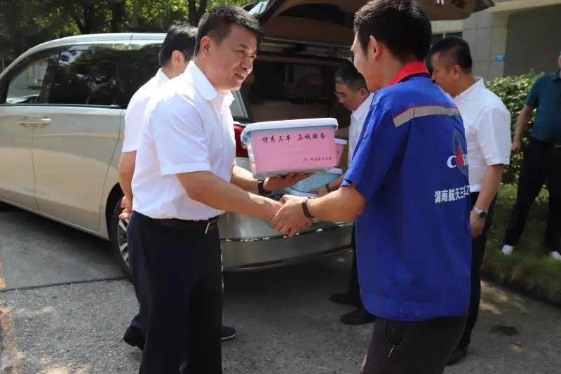 9月2日-9月6日,湖南航天黨委書(shū)記、董事長(zhǎng)唐應(yīng)偉,湖南航天黨委副書(shū)記、副總經(jīng)理?xiàng)钸\(yùn)斌、湖南航天黨委委員、副總經(jīng)理宋衛(wèi)武、湖南航天總會(huì)計(jì)師嚴(yán)波分別來(lái)到三豐公司生產(chǎn)基地和橋(隧)提質(zhì)改造項(xiàng)目施工現(xiàn)場(chǎng),看望一線生產(chǎn)技術(shù)人員,為他們送上慰問(wèn)品。