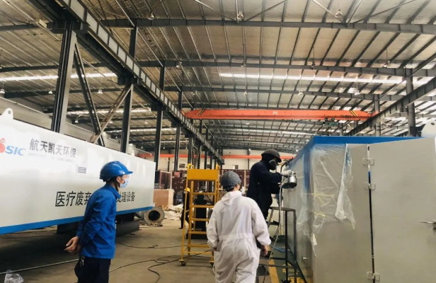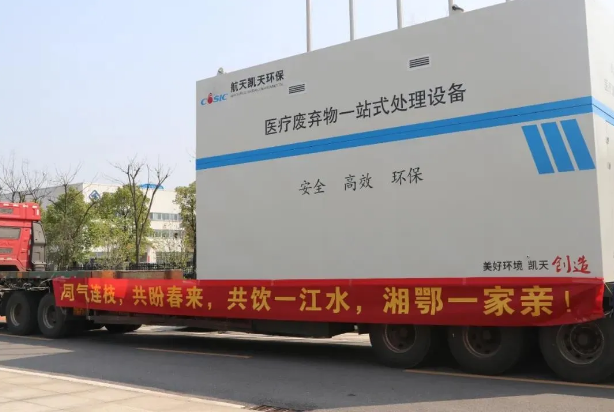 3月初,湖南航天所屬航天凱天環(huán)保在了解到武漢市醫(yī)療廢棄物處理壓力大、急需醫(yī)療廢棄物處理設備后,快速行動,組織技術和生產(chǎn)人員加班加點,充分發(fā)揮公司在固廢處理領域技術優(yōu)勢,緊急趕制出醫(yī)療廢棄物一站式處理設備。