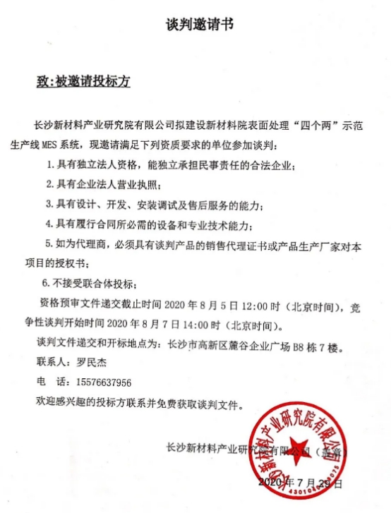 長沙新材料產(chǎn)業(yè)研究院有限公司談判邀請書