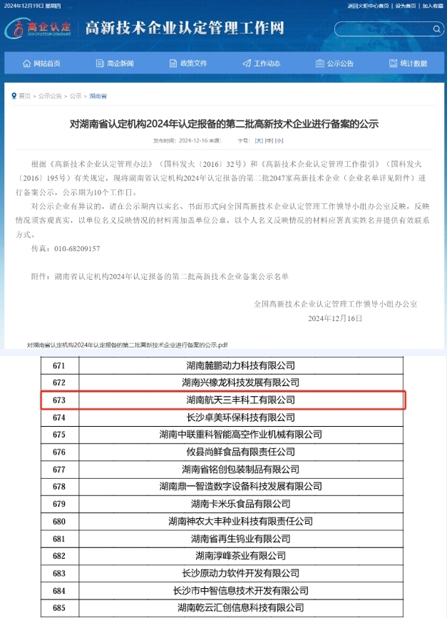 近日,全國(guó)高新技術(shù)企業(yè)認(rèn)定管理工作領(lǐng)導(dǎo)小組辦公室發(fā)布“對(duì)湖南省認(rèn)定機(jī)構(gòu)2024年認(rèn)定報(bào)備的第二批高新技術(shù)企業(yè)進(jìn)行備案的公示”,三豐公司順利通過(guò)“國(guó)家高新技術(shù)企業(yè)”復(fù)審。