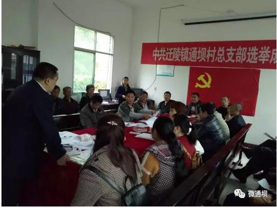 2017年4月17日,遷陵鎮(zhèn)通壩村黨支部在村部會(huì)議室召開(kāi)了黨支部換屆選舉大會(huì)。大會(huì)選舉產(chǎn)生了新一屆村黨支部委員會(huì)委員,換屆選舉工作取得圓滿成功。