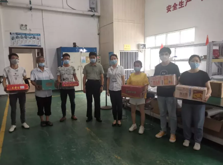 航天凱天環(huán)保黨總支書記、董事長宋衛(wèi)武帶隊(duì)為航天凱天裝備事業(yè)部生產(chǎn)人員送去涼茶、面包等“清涼”物資。