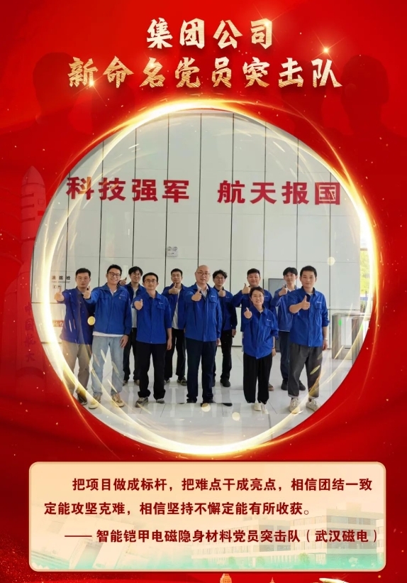 在近日集團公司召開的“七一”表彰會上,武漢磁電智能鎧甲電磁隱身材料黨員突擊隊被命名為集團公司級黨員突擊隊。