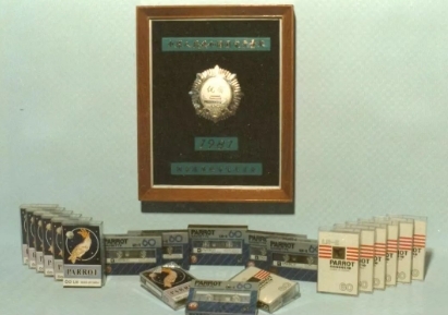 通過(guò)二十多年的艱苦卓絕的奮斗,工廠發(fā)展碩果累累,八十年代初,824廠生產(chǎn)的《鸚鵡牌》盒式錄音磁帶榮獲國(guó)家磁記錄行業(yè)唯一的銀質(zhì)獎(jiǎng),年均上交利潤(rùn)五、六百萬(wàn)元,當(dāng)時(shí)這個(gè)數(shù)字在航天部都名列前矛,為國(guó)家航天事業(yè)的發(fā)展作出了積極貢獻(xiàn)。那時(shí),“鸚鵡”飛遍祖國(guó)的大江南北,飛出了國(guó)門(mén),工廠也進(jìn)入了鼎盛時(shí)期。