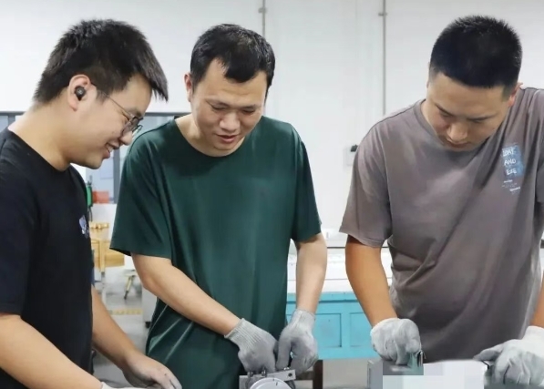 鉗工組周工、小張、小章三名青年承擔(dān)了重點(diǎn)批產(chǎn)任務(wù)的突擊工作。該批工件長(zhǎng)度近5米,表面裂縫槽數(shù)量多,產(chǎn)品易變形,加工難度大。面對(duì)挑戰(zhàn),三人迎難而上。周工憑借豐富經(jīng)驗(yàn)統(tǒng)籌全局,小張、小章積極建言獻(xiàn)策、主動(dòng)配合,他們通過(guò)精細(xì)分工和緊密協(xié)作,不斷調(diào)整裝夾方式與加工路徑,最終高質(zhì)量完成任務(wù)。
